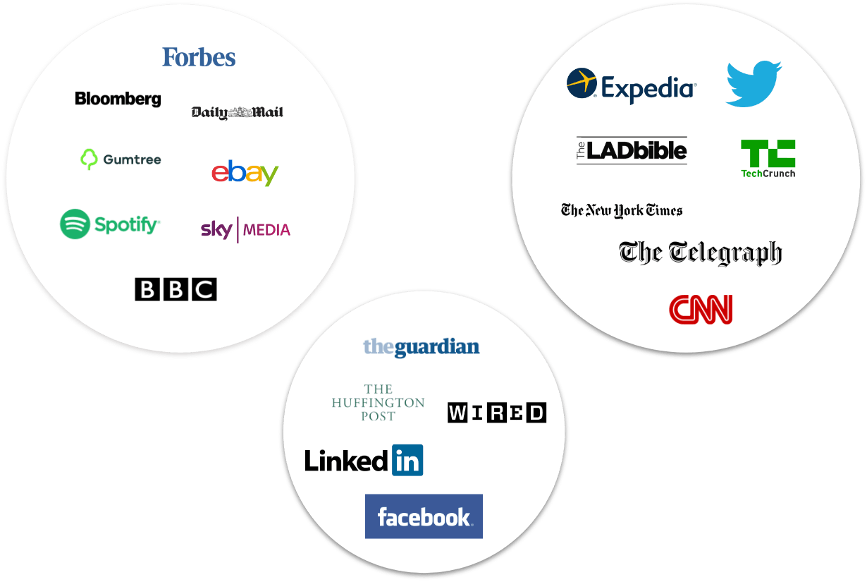 The ads are shown across 100's of thousands of premium websites like Forbes, BBC, TechCrunch, CNN, Google networks, Facebook, LinkedIn, eBay, Bing Network and more... giving you access to all prospects in your marketplace. We have access to 93% of the Global market inventory.